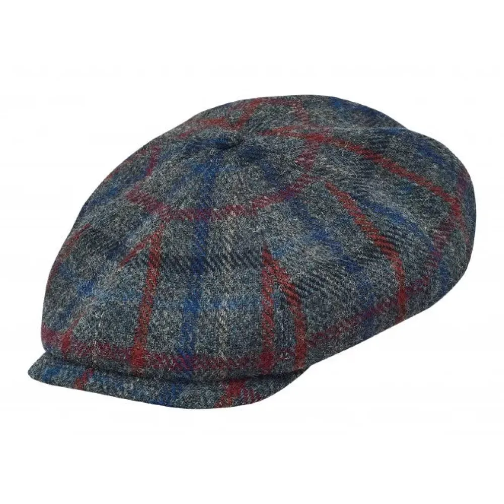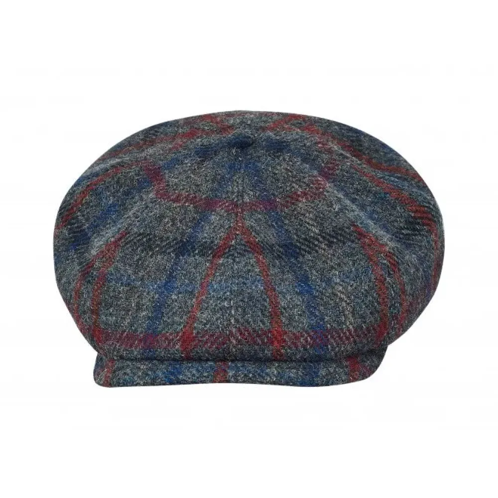 PEAKY BLINDERS SHELBY - HARRIS TWEED Genuine Scottish Harris Tweed 8 Panels Man Cap Grey-Blue-red