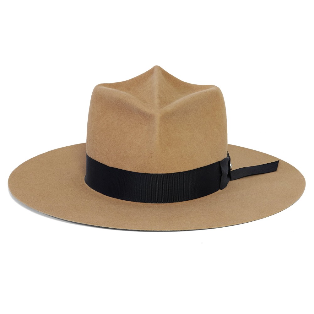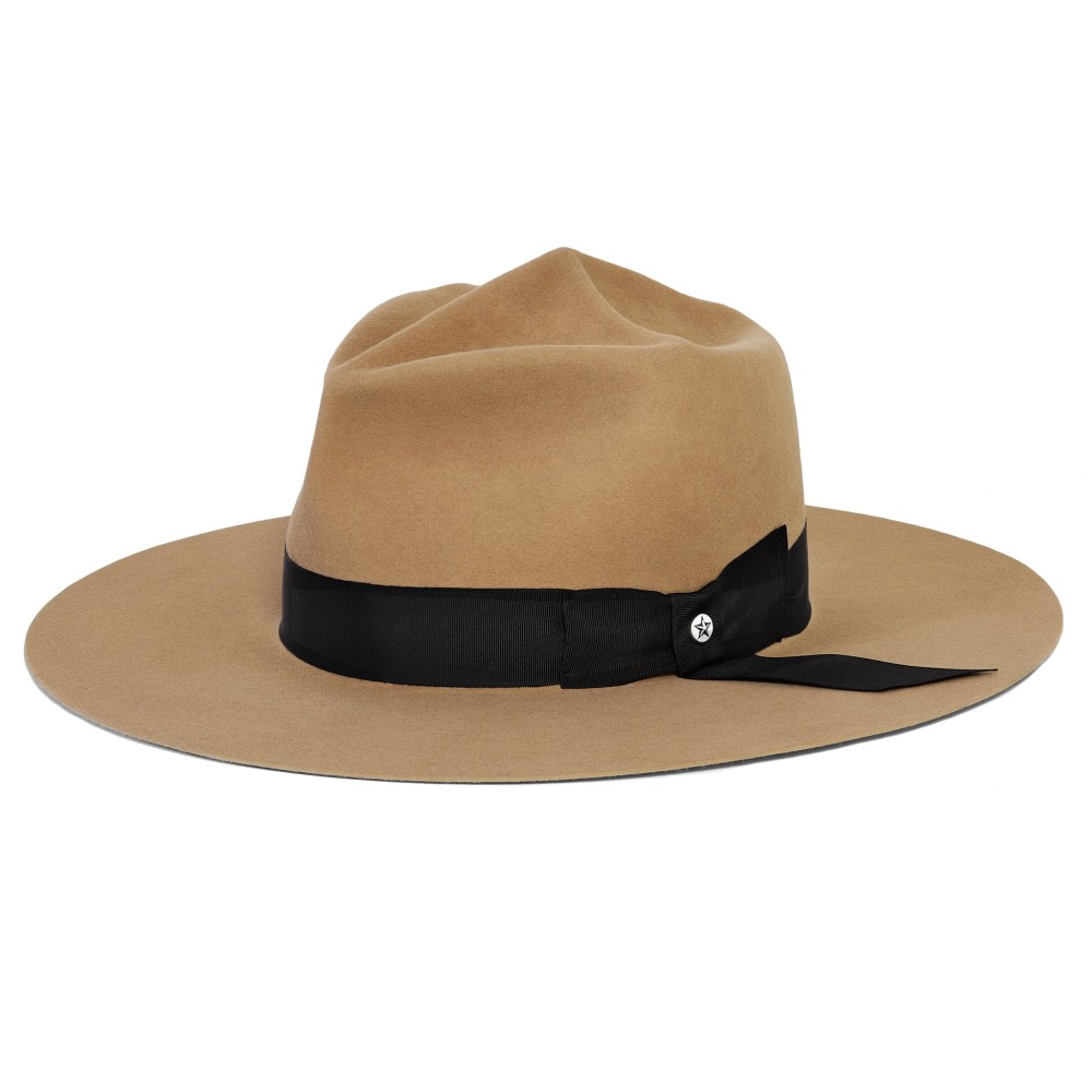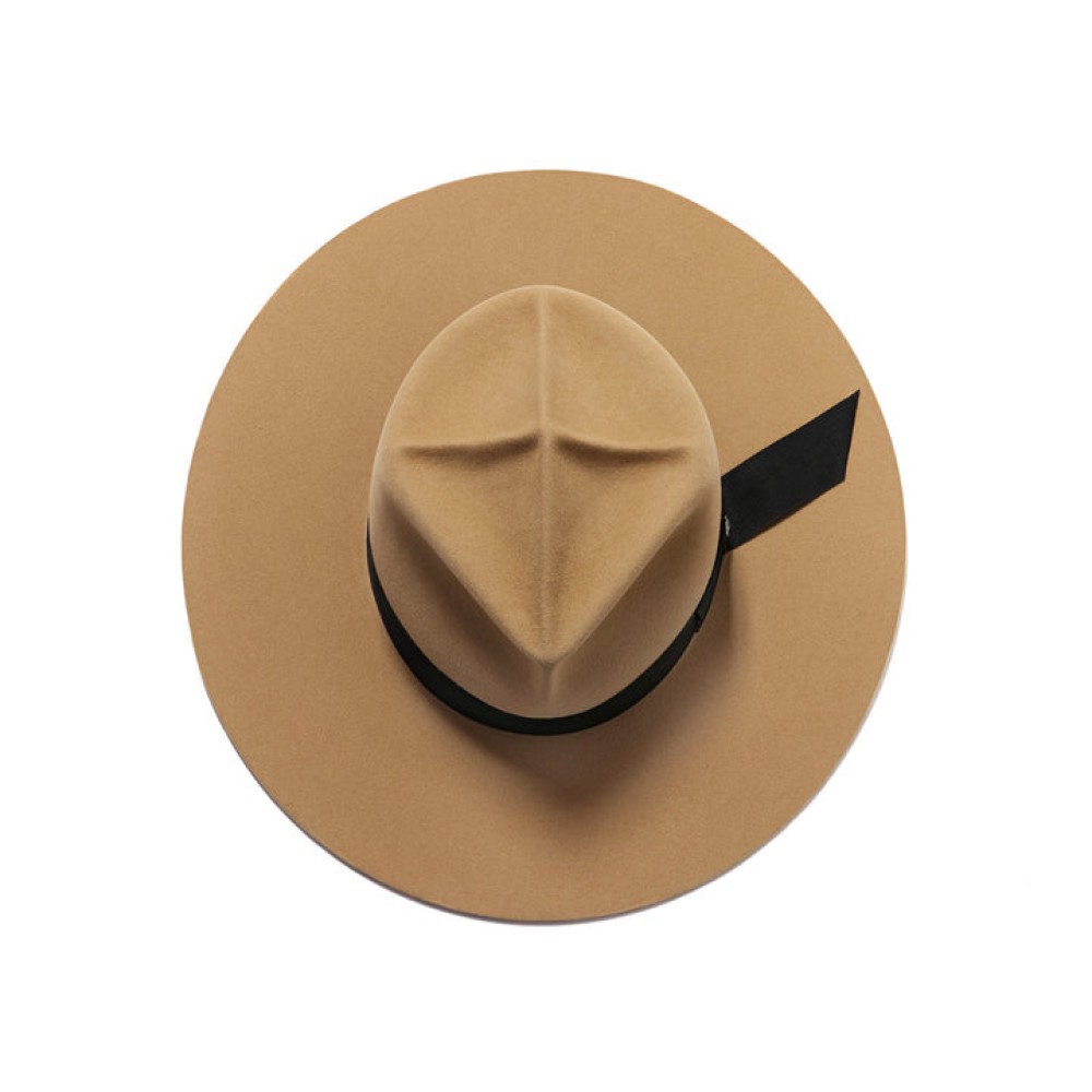 This high quality headwear is made from the finest Australian wool. It has a cross-shaped fedora crown with a medium-length, slightly upturned pencil-curved brim.